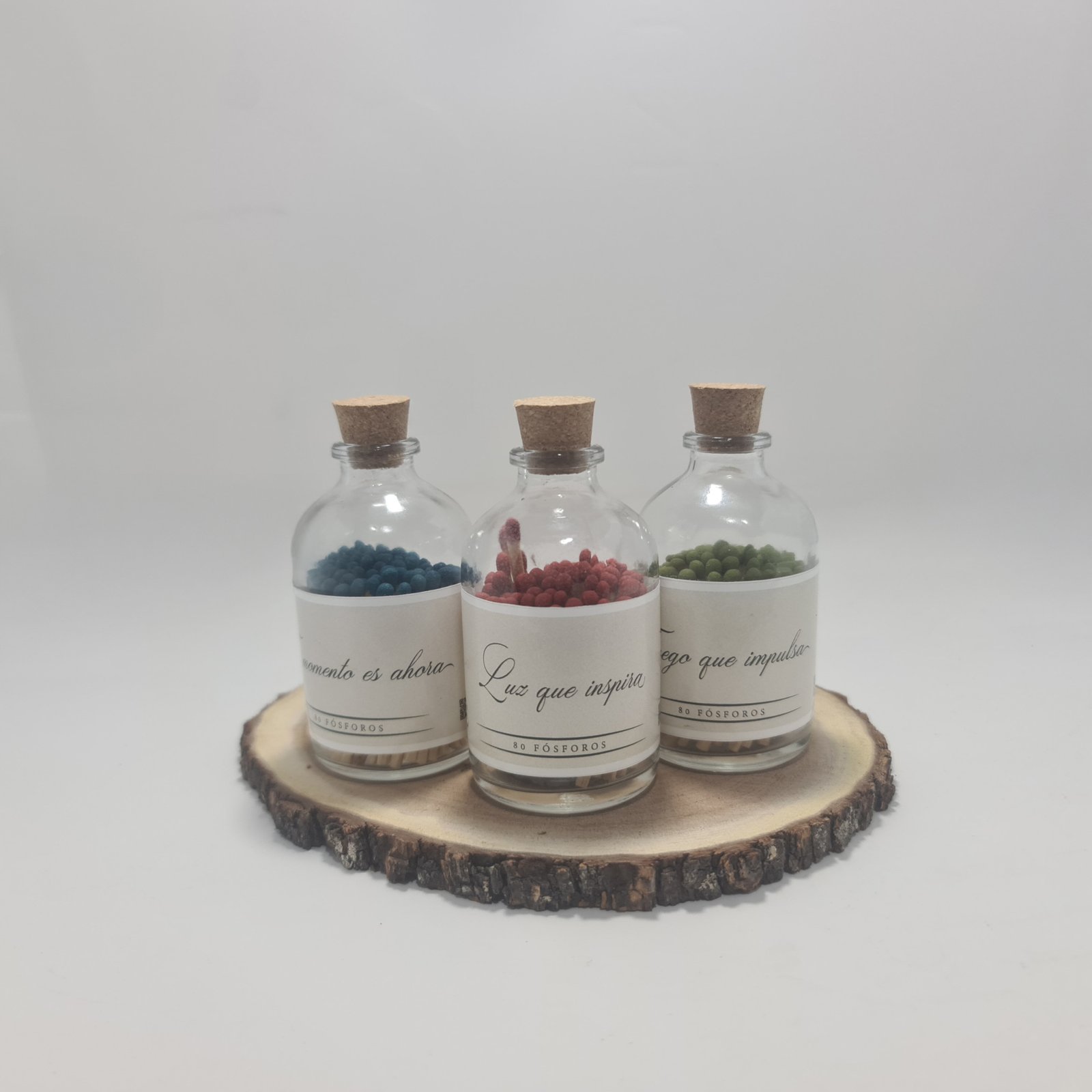 Porque cada vez que encendés una vela merece su momento. Este frasco trae 80 fósforos, cada uno con una frase distinta.