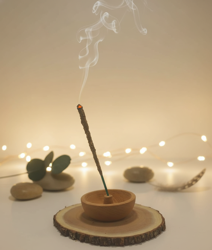 Diseñado para sostener tus sahumerios con simpleza y belleza. Hecho en madera de roble con acabado natural. 8cm de diámetro, perfecto para cualquier espacio.