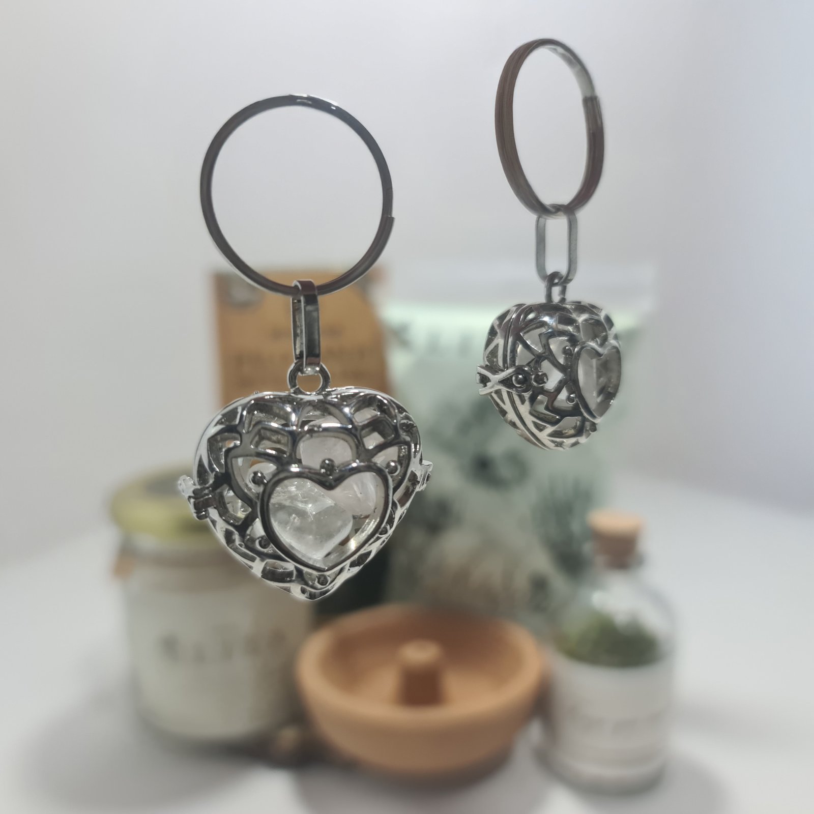 Un espacio pequeño para guardar lo que importa. Este relicario de níquel viene con dos cuarzos: rosa y cristal. Podes usarlos para lo que sientas: como recordatorios, intenciones, o simplemente porque te gustan. No hay una forma correcta de hacerlo.